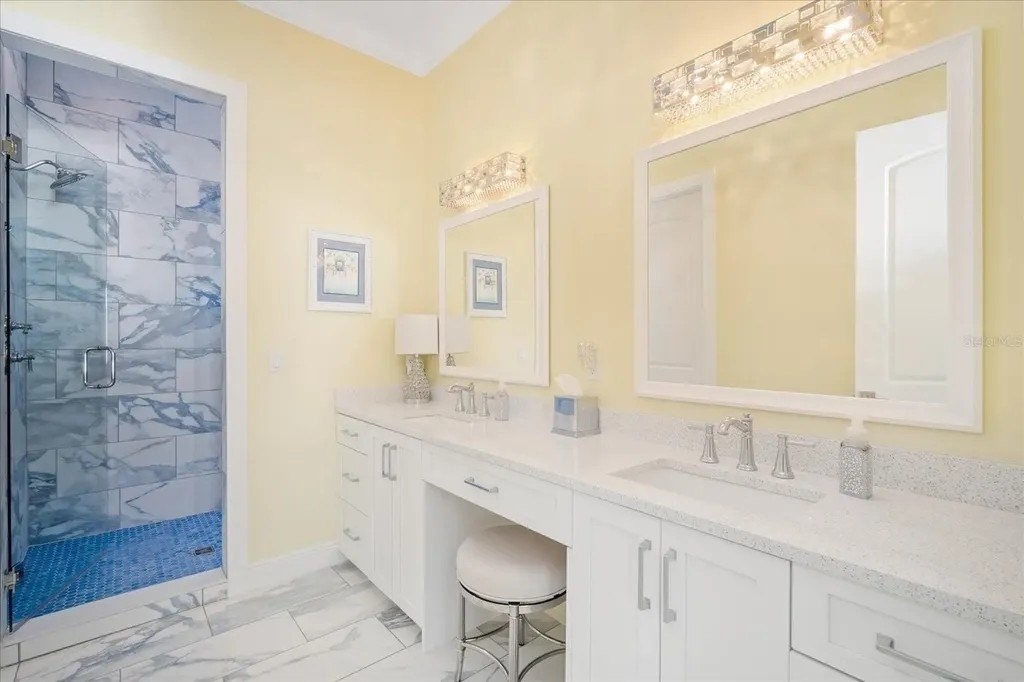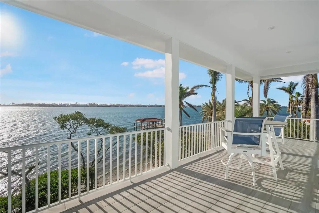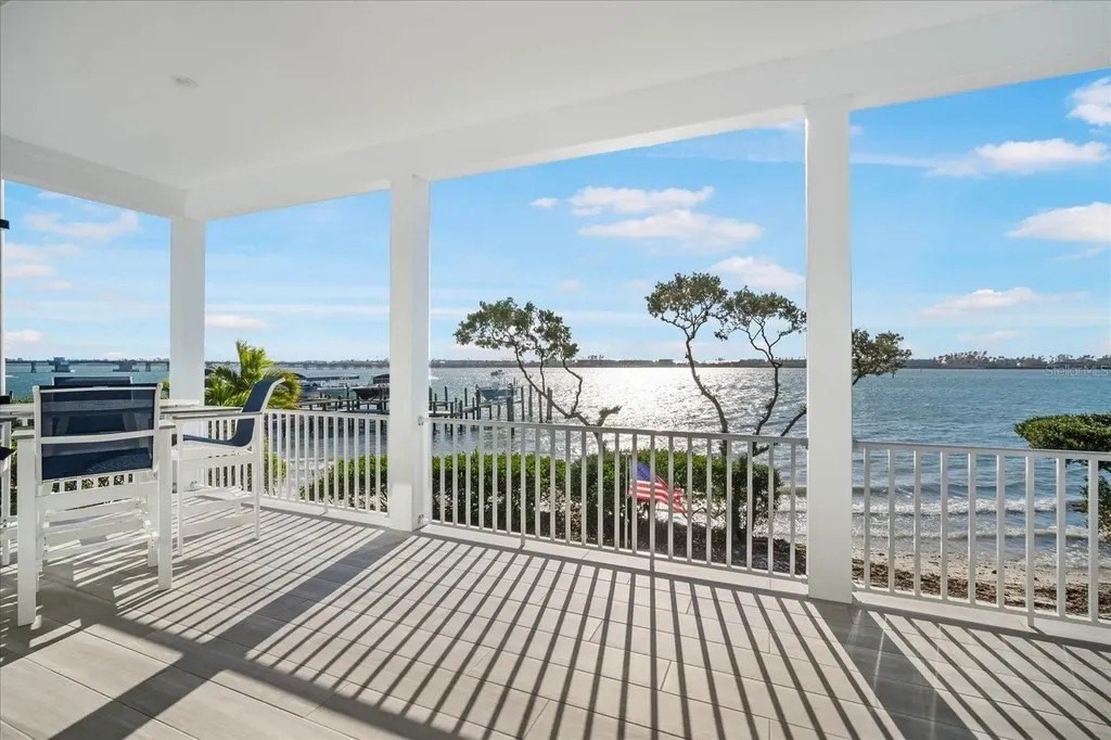 Welcome to this stunning home in the exclusive Sunset Harbor gated community, a private enclave of eight custom-built residences situated on the tranquil Anna Maria Sound. No expense was spared on this gorgeous waterfront home featuring 4 bedroom 3.5 baths with over 5000 sq ft of indoor/outdoor living space. Ceiling fans in every bedroom, custom shelving enhanced closets, upgraded lighting, quartz countertops, custom cabinets and trim work throughout, solid wood 8' doors, Hunter Douglas plantation shutters, and a stunning hand-built Ambrosia maple wood staircase are just a some of the features in this newly constructed custom home. Built to Florida Category 5 hurricane standards, this residence includes a tankless water heater, two Trane heating and air conditioning units, controlled by Honeywell Home programmable thermostats and a 50-year concrete flat roof and newly installed reinforced rip rap along a concrete wall at the rear of the property add durability. Step outside to your oasis back yard complete with a 11 by 38-foot heated saltwater pool and spa with designer lighting, all set atop a concrete raised platform. An outdoor custom built outdoor kitchen with a wet bar, refrigerator and propane-powered grill are perfect for entertaining and dining poolside while enjoying incredible views of Anna Maria sound. A 950-pound capacity elevator with Italian marble flooring serves all three floors. The rear of the home includes two 10-by-30-foot fenced decks with porcelain tile flooring, a new dock with an assigned slip that includes a 10,000-pound lift with water and power. The garage level is built on 31 thirty-foot concrete/steel reinforced pylons and features an outdoor shower and a 75-by-25-foot outdoor living area with custom turf and travertine pavers. The oversized garage accommodates 2-4 vehicles and features keyless entry, epoxy concrete flooring, and aluminum ceiling storage racks. The second floor showcases custom-built cabinets in the library, a Hunter Douglas hardwired designer roller sunshade on the slider, a 9-by-11-foot covered front porch, and a custom hand-built fireplace mantle with a propane starting system. The kitchen is thoughtfully designed with lighting in and under the cabinets, a farmhouse porcelain sink, a Kitchen-Aid ice maker that produces 25 pounds of ice daily, a Silhouette professional beverage refrigerator, and custom-built cabinets with a hooded specialty-designed vent. Schedule your private showing today!